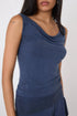A double layered multi wear top that can be worn on or off the shoulder. Features a draped cowl neck drape, flattering across a range of chest sizes. Crafted from cupro, a butter soft, semi-sheer and smooth to the touch material made from recycled cotton waste.