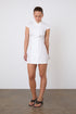 Introducing The Missy Dress, Porcelain. Inspired by our best-selling Missy Blouse, now reimagined as a mini dress, this fitted cap sleeve design features a curved wide collar and delicate mother-of-pearl-style buttons, offering a fresh take on a beloved classic.