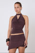 The Kylie Halter Top is crafted from butter-soft cupro with a cut-out neckline and a draped bust . It features long ties at the back of the neck that fall over an open back.