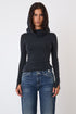 The bandeau neckline is designed to be worn pulled down over one shoulder, revealing the perfect amount of collar bone, or up as a sleek, draped hood.