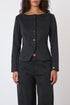 Features piping detail along the front and sleeves, and shaped seams for a flattering silhouette. Finished with tonal buttons down the front and keyhole cuffs.