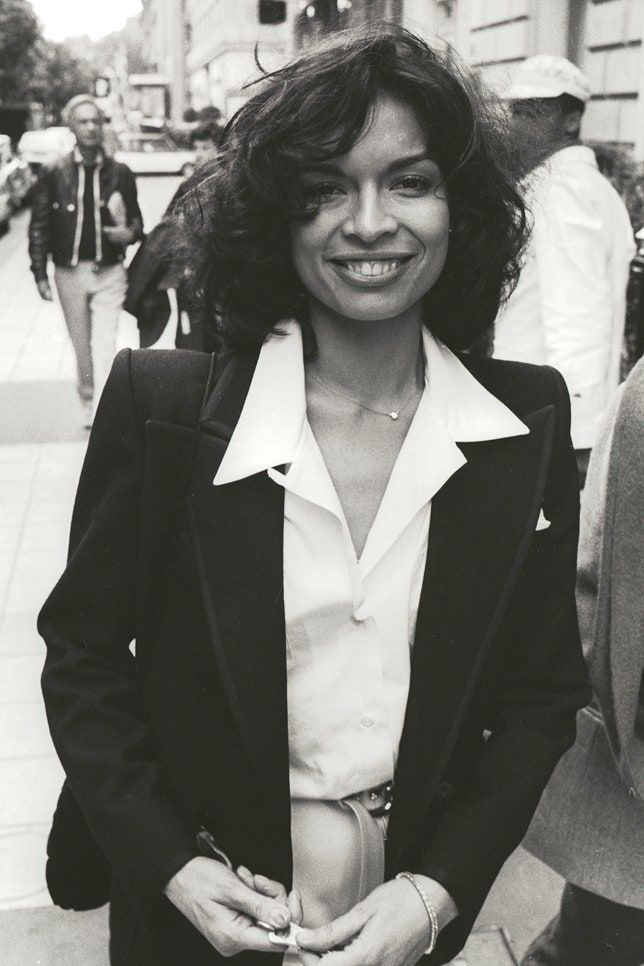 Bianca Jagger was known for her presence at Studio 54 and her public life in the spotlight. She was often photographed at high-profile events and parties, making her a reference point for women exploring bold, individual fashion choices.