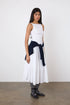 Mid-rise midi with a deep v-shaped waistband complete with invisible front zip closure that leads into a gathered midi, creating the perfect floaty a-line fit. Made from a new 100% cotton fabrication with a subtle slubby seersucker stripe.