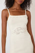The Marie Knit Mini Dress is a fitted mini dress made from a soft cotton blend. It features a square neckline, adjustable straps, and delicate pointelle detailing with a rose knit motif at the waist. A ribbed body and subtle flared hem add shape and movement.