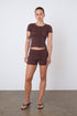 The Marie Knit Shorts are a fitted knit style with a mid-rise waist and short length. Made from a soft cotton blend, they feature knit patch pockets and subtle pointelle flower detailing at the hem. Designed for a snug yet comfortable fit with stretch.