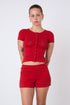 The Marie Knit Shorts are a fitted knit style with a mid-rise waist and short length. Made from a soft cotton blend, they feature knit patch pockets and subtle pointelle flower detailing at the hem. Designed for a snug yet comfortable fit with stretch.