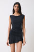 A double layered multi wear top made from cupro fabric. Wear on or off the shoulder. Features a draped cowl neck drape, flattering across a range of chest sizes. Crafted from cupro, a butter soft, semi-sheer and smooth to the touch material made from recycled cotton waste.