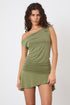 A double layered multi wear top featuring a draped cowl neck, flattering across a range of chest sizes. Wear on or off the shoulder. Crafted from cupro, a butter soft, semi-sheer and smooth to the touch material made from recycled cotton waste.